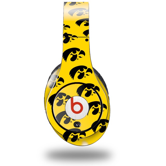 WraptorSkinz Skin Decal Wrap compatible with Beats Studio (Original) Headphones Iowa Hawkeyes Tigerhawk Tiled 06 Black on Gold Skin Only (HEADPHONES NOT INCLUDED)