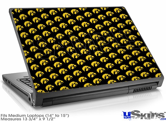 Laptop Skin (Medium) - Iowa Hawkeyes Tigerhawk Tiled 06 Gold on Black
