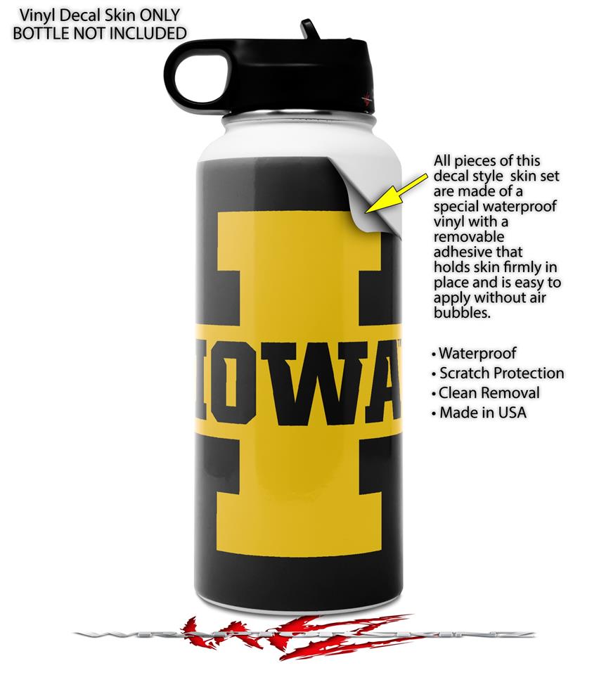 Skin Wrap Decal compatible with Hydro Flask Wide Mouth Bottle 32oz Iowa Hawkeyes 04 Gold on Black (BOTTLE NOT INCLUDED)