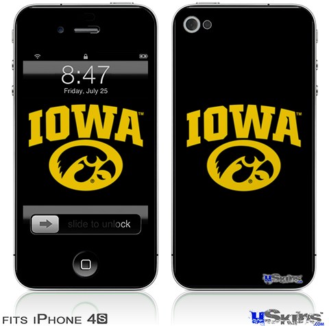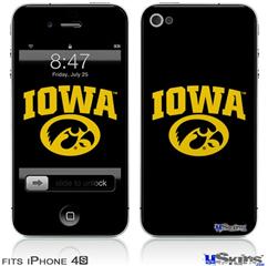 iPhone 4S Decal Style Vinyl Skin - Iowa Hawkeyes Tigerhawk Oval 01 Gold on Black