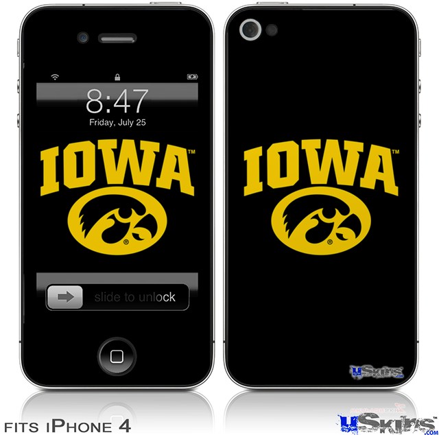 iPhone 4 Decal Style Vinyl Skin - Iowa Hawkeyes Tigerhawk Oval 01 Gold on Black (DOES NOT fit newer iPhone 4S)