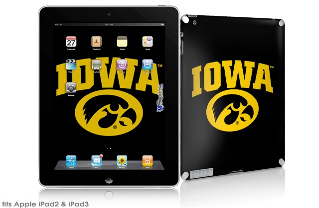 iPad Skin - Iowa Hawkeyes Tigerhawk Oval 01 Gold on Black (fits iPad2 and iPad3)