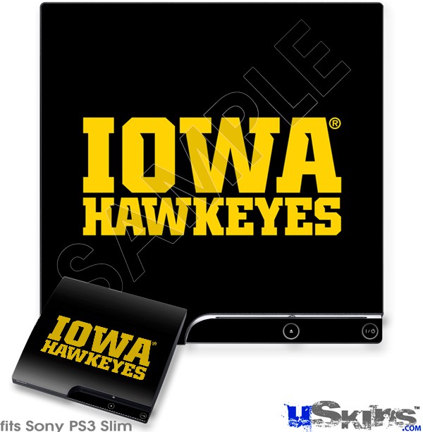 Decal Skin compatible with Sony PS3 Slim Iowa Hawkeyes 01 Gold on Black
