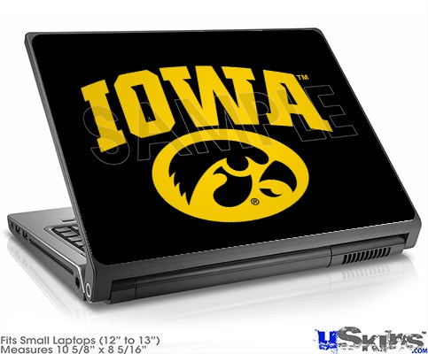 Laptop Skin (Small) - Iowa Hawkeyes Tigerhawk Oval 01 Gold on Black