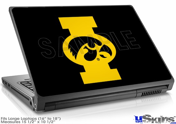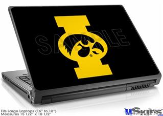 Laptop Skin (Large) - Iowa Hawkeyes Tigerhawk Oval 02 Gold on Black