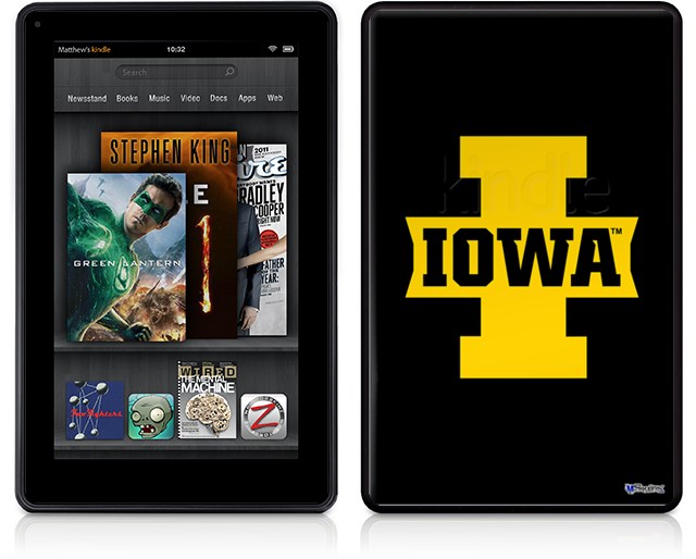 Amazon Kindle Fire (Original) Decal Style Skin - Iowa Hawkeyes 04 Gold on Black