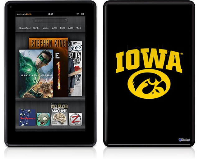 Amazon Kindle Fire (Original) Decal Style Skin - Iowa Hawkeyes Tigerhawk Oval 01 Gold on Black