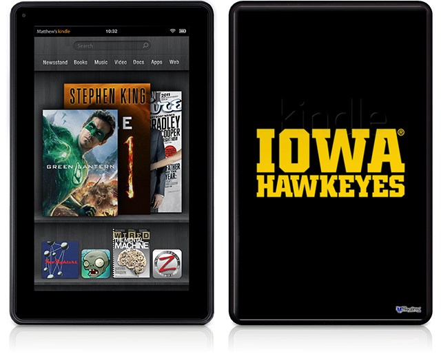 Amazon Kindle Fire (Original) Decal Style Skin - Iowa Hawkeyes 01 Gold on Black