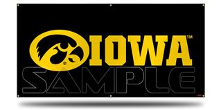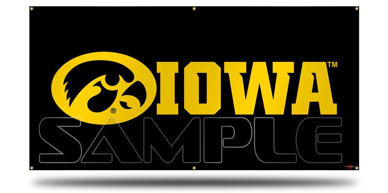 Iowa Hawkeyes Tigerhawk Oval 03 Gold on Black Horizontal Garage Decor Shop Banner 36"x72"