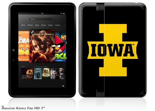 Iowa Hawkeyes 04 Gold on Black Decal Style Skin fits 2012 Amazon Kindle Fire HD 7 inch