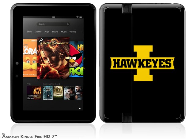 Iowa Hawkeyes 02 Gold on Black Decal Style Skin fits 2012 Amazon Kindle Fire HD 7 inch