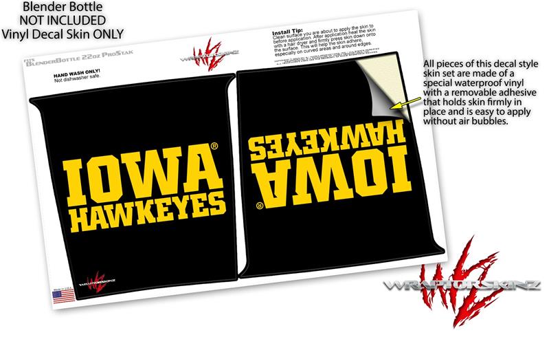 Decal Style Skin Wrap works with Blender Bottle 22oz ProStak Iowa Hawkeyes 01 Gold on Black (BOTTLE NOT INCLUDED)